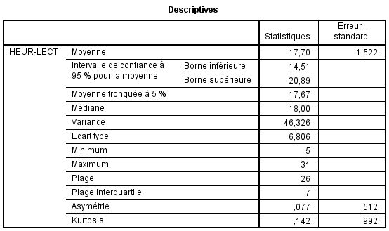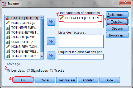 نقوم بنقل متغير القراءة « heur-lect » من حيز المتغيرات إلى حيز التحليل «Liste des Variables dépendantes »