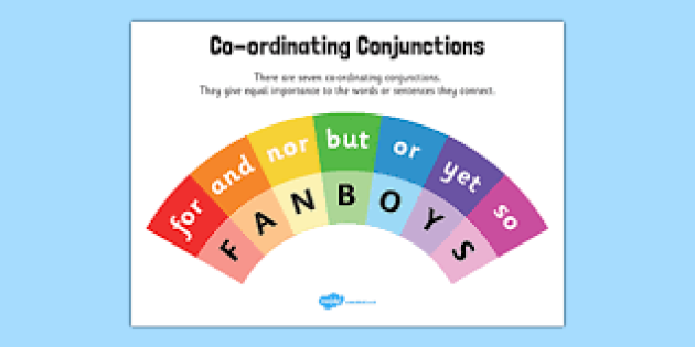 The English language has seven coordinating conjunctions[1], and theyare easy to remember if you can just remember FANBOYS